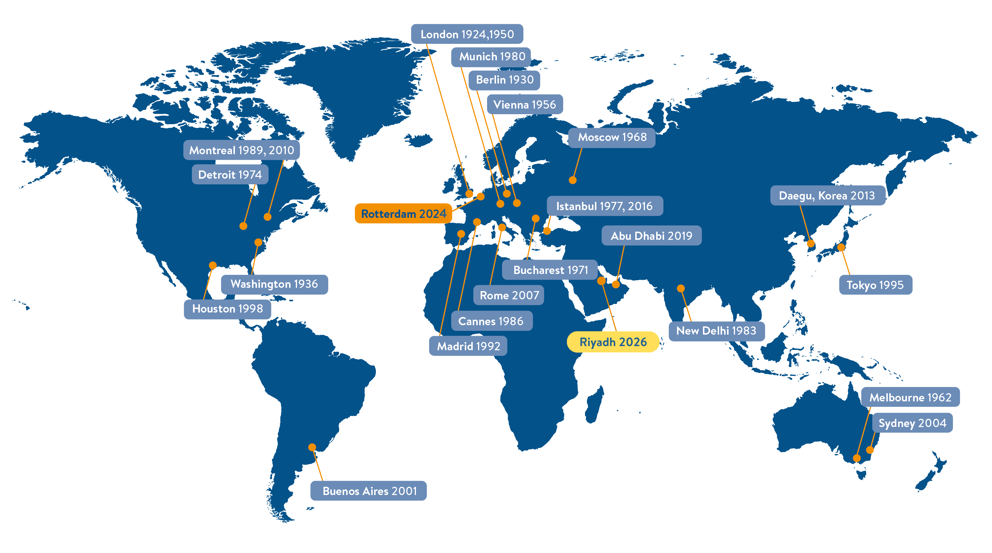 2023 marks 100 years of the World Energy Council delivering global and regional impact. Beyond changing its name, the Council has built a deeply local and globally networked energy community of over 3,000 member organisations in around 90 countries. The most recent World Energy Congress was held in Abu Dhabi in 2019 and brought together over 18,000 attendees from 146 countries. In 2024, exactly 100 years after the first event in London, the 26th World Energy Congress will be held in Rotterdam.