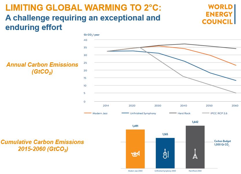 After having defined the three exploratory scenarios developed in the study, Modern Jazz, Unfinished Symphony, and Hard Rock, that predict the probability of success in achieving sustainable economic growth, in the context of these Ms Cronenbold scenarios it would be difficult to achieve 2ºC warming goal.
