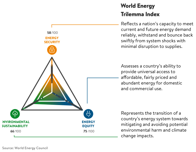 Driving a clean and just energy transition that simultaneously ensures a secure, equitable, and sustainable way forward continues to be a complex problem. 2022, the year of convergence of the crises, reinforced the need for balance in the dimensions of energy security, affordability, and sustainability. The Trilemma framework continues to offer a baseline for designing and developing new insights to assist regions in understanding the impact and track the progress of their energy transitions.