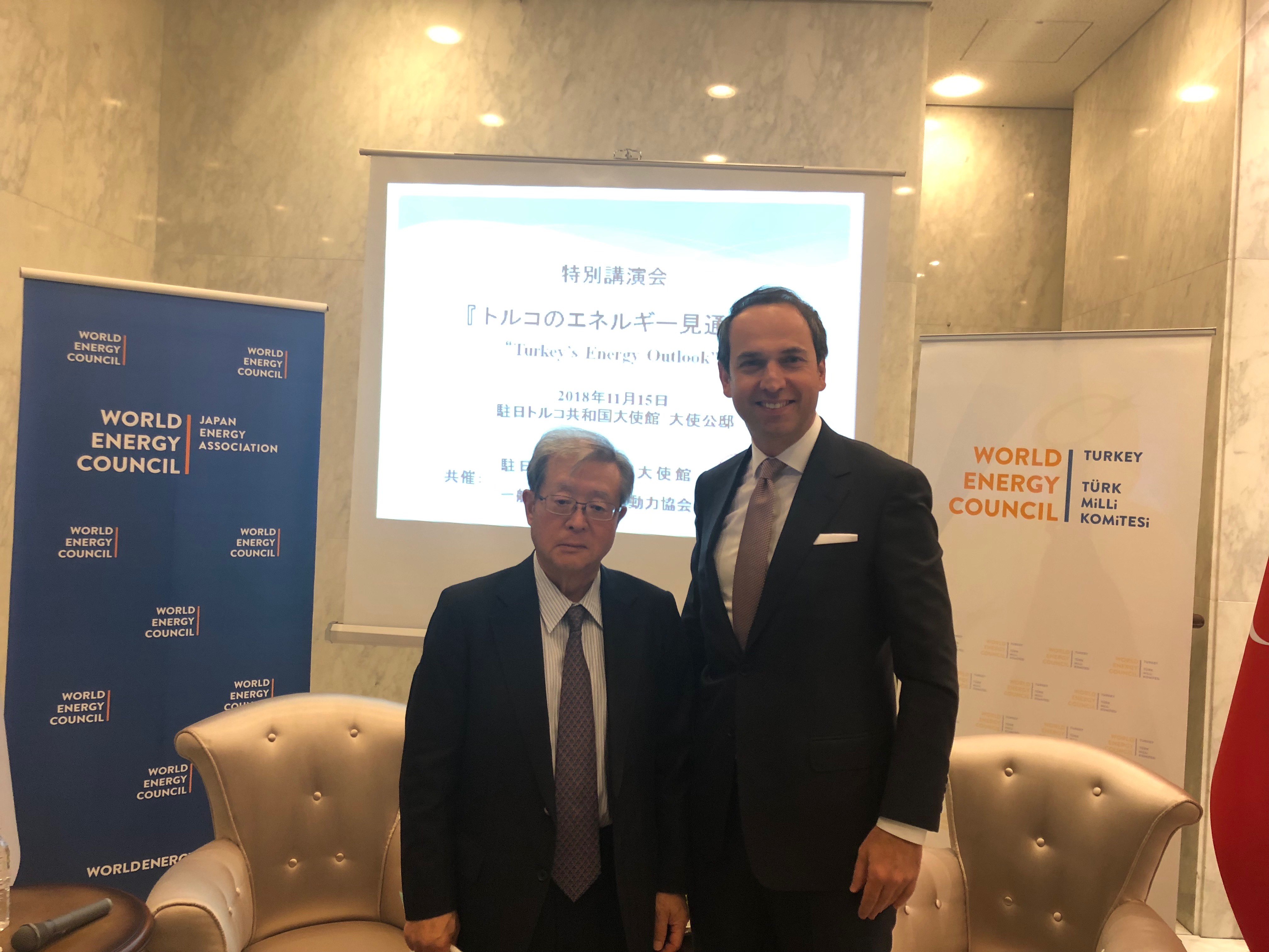 Following the opening remarks by Ambassador Mercan and Mr. Masumoto, Chairman of Japanese Member Committee, a 50-minute keynote speech entitled "Energy Transition in Turkey" was given by Deputy Minister Bayraktar. During his speech, Mr. Bayraktar emphasized that Turkey has been striving to achieve stable and affordable energy supply to meet steadily increasing energy demand, while actively introducing renewable energy sources.